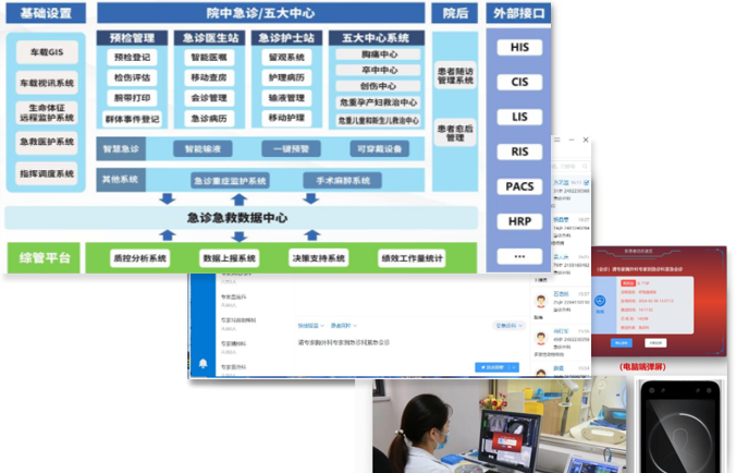 医卫康急诊临床信息系统针对急诊科发展趋势,根据卫生部的急诊分诊标准(《急诊病人病情分级试点指导原则》),设计 开发专业智能的急诊分诊系统;根据卫生部的急诊质控要求,详细记录病人在每个救治环节所经历的时间,实现患者、医务 人员、设备精细化管理。通过对急诊科流程改造和智能化设计和实现,有效提升急诊科临床工作效率,促进急诊科室管理精 细化。基于胸痛中心、卒中中心、创伤中心、中毒救治中心、高危孕产妇救治中心、新生儿救治中心建设的大急救与区域协同救治 理念⸺实现以患者为中心、救治时序为主线,急救医疗数据自动采集、院前与院内急救无缝衔接、移动会诊、双向转诊、 多方协同工作、院内手术全程跟踪,直至患者随访康复的医疗全过程纵向管理,结合急诊临床信息的横向管理,形成大急救 二维管理模式。致力于以此系统性解决中国的急症救治问题,降低发病率、致残率和死亡率,助力完善中国现代化急救保障 体系。
